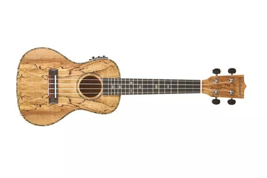 Concert ukulele with spalted maple top, back & sides. Mahogany neck with closed back tuners. Black textured buttons. Pickup with built in tuner.