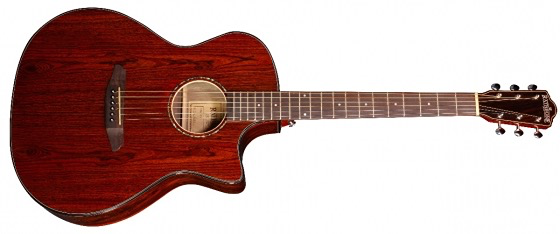 The R3BCE Rathbone Grand-Auditorium 'Double Top' features a technologically advanced sound-table made of two super-thin layers of Bocote with a Carbon Fibre lattice in-between.