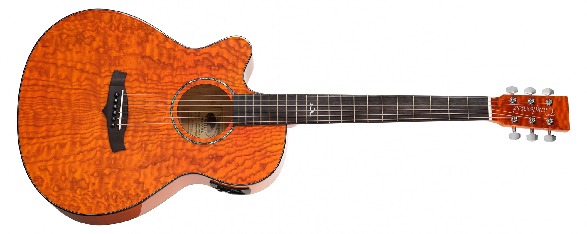 The Azure series TA4CEHNLH guitar is a finely crafted left-handed instrument that offers a blend of superior craftsmanship and exceptional tonal quality. Designed with a left-handed Super Folk Cutaway body shape, this guitar ensures comfort and accessibility for left-handed players, making it ideal for musicians seeking both performance and ease of play. The quilted ash top stands out with its stunning, intricate grain pattern, offering a visually striking appearance while enhancing the tonal characteristics of the guitar, providing bright, crisp tones that are both resonant and dynamic.