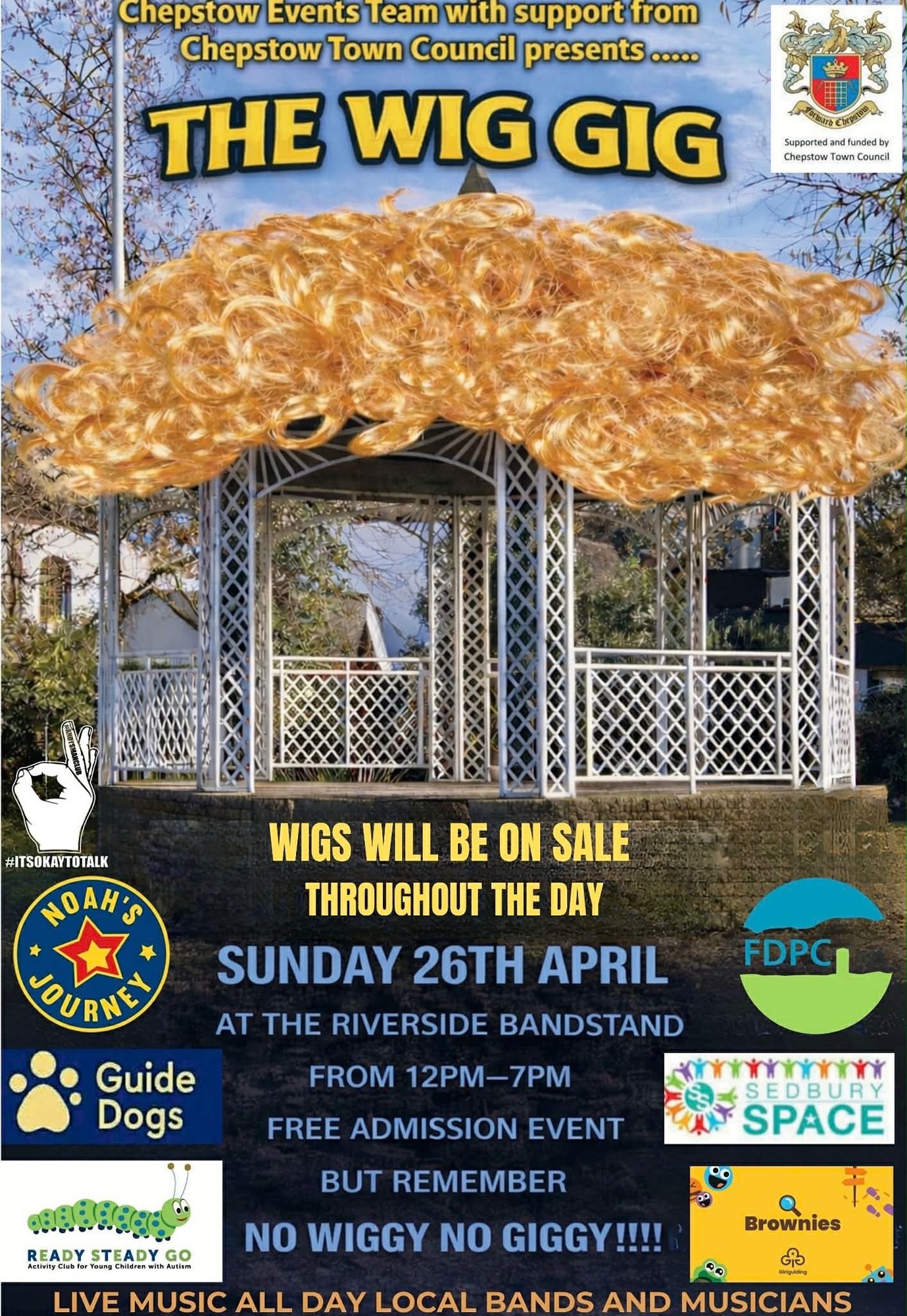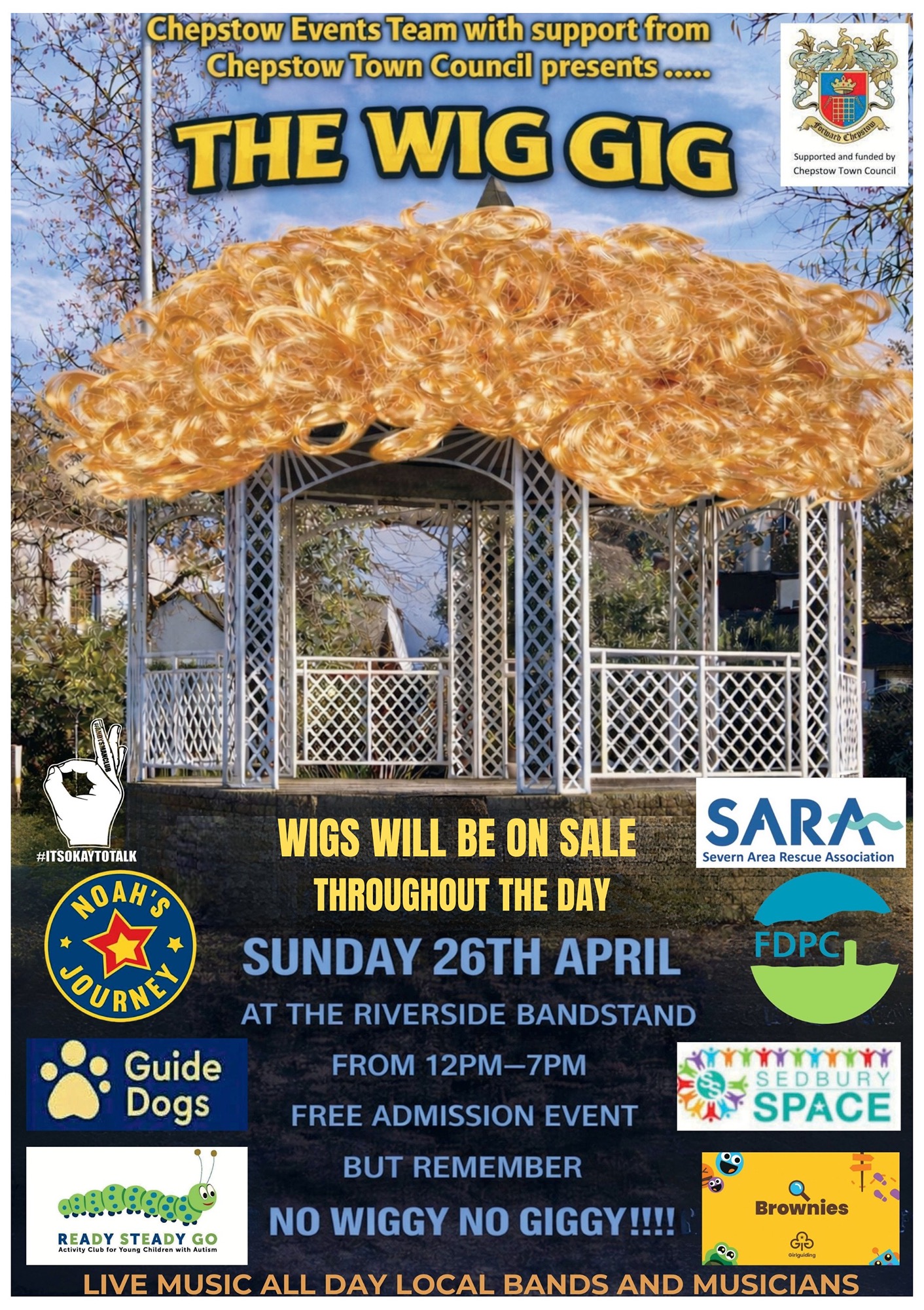 'CHARITY WIG GIG' at 'CHEPSTOW RIVERSIDE BANDSTAND' bought to you by 'CHEPSTOW EVENTS TEAM' and very kindly supported by 'CHEPSTOW TOWN COUNCIL' will be on SUNDAY APRIL 26TH,